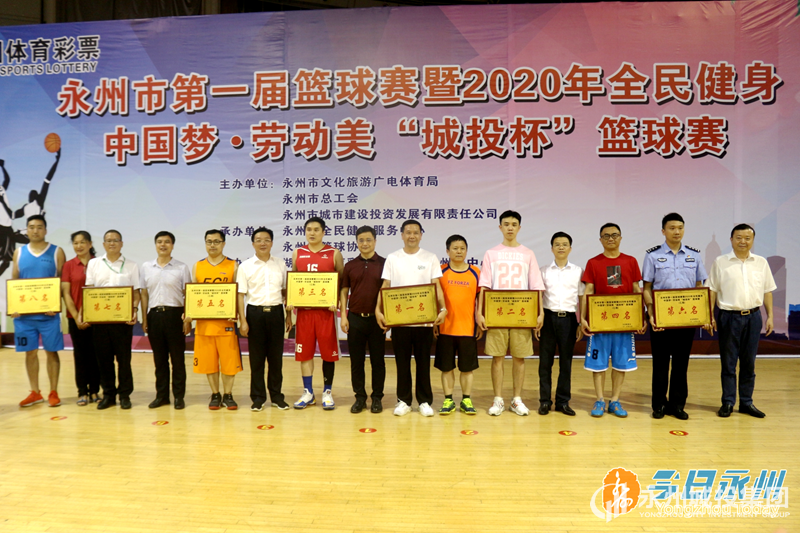 6月17日,经过8天紧张激烈地角逐,永州市第一届篮球赛暨2020年全民健身中国梦·劳动美“城投杯”篮球赛落下帷幕。市委副书记、政法委书记张贺文宣布比赛闭幕,市委常委、宣传部长贺辉,市人大常委会副主任、市总工会主席胡先荣等出席闭幕式,并为获奖代表队颁奖。