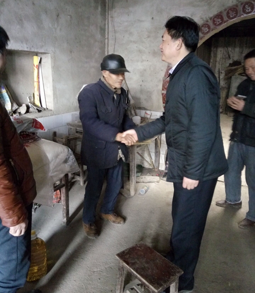 为贯彻落实市委、市政府精准扶贫的工作要求,按照集团公司统一安排和部署,在新春佳节来临之际,市水务投开展了“精准扶贫、温暖到家”活动。1月27日上午,市水务投副经理彭安君带领公司办公室、工会、财务等相关人员,前往冷水滩区蔡市镇三龙塘村,登门看望我司精准扶贫对象唐治保老人,详细询问了他的生活现状及身体健康状况,给他送去了棉被、被套、毛衣、大米、食用油等慰问品及慰问金,并向唐治保老人送上了新春的祝福。