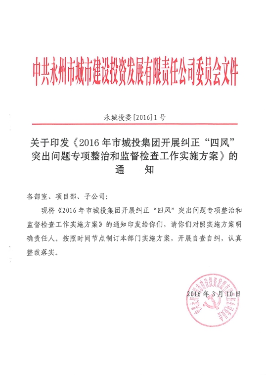 关于印发《2016年555000a线路检测中心开展纠正“四风”突出问题专项整治和监督检查工作实施方案》的通知