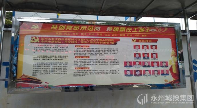今年3月份,首个由永州市质安站、市安居投、湖南六建党员代表创建“党员示范岗”活动在永州市湘江西岸将军岭片棚户区改造安置小区项目工地落成,并开展项目管理服务人员的“党员亮身份、树形象”、“服务派对”、“党建互动+业务交流”和“评选岗位明星”活动。