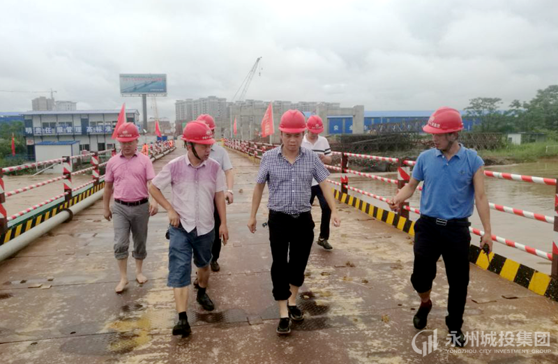 集团董事、总经理蒋志刚带领突击队员在城南大桥视察洪水情况
