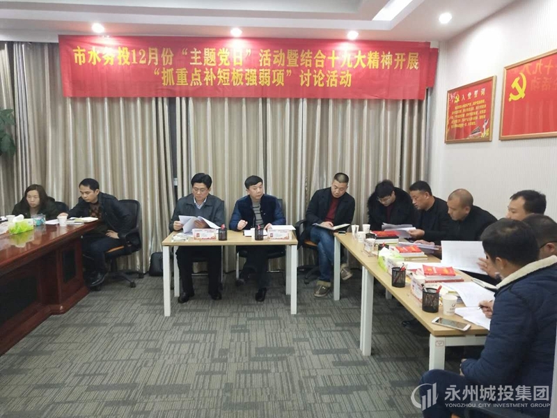 根据集团党委的部署,12月29日,水务投党支部积极组织全体党员、入党积极分子及非党中层干部开展12月份“主题党日”活动暨结合十九大精神开展“抓重点补短板强弱项”讨论活动。