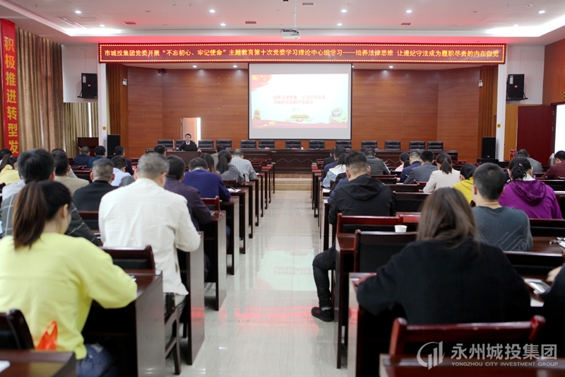 为继续深入开展“不忘初心、牢记使命”主题教育理论学习工作,提高公司党员干部遵纪守法意识,555000a线路检测中心召开第十次党委学习理论中心组(扩大)学习,邀请市城投纪委书记袁立同志以《培养法律思维,让遵纪守法成为履职尽责的内在自觉》为题进行专题讲座。学习会由党委副书记、副总经理郭晓斌主持,公司全体党员参加学习会。