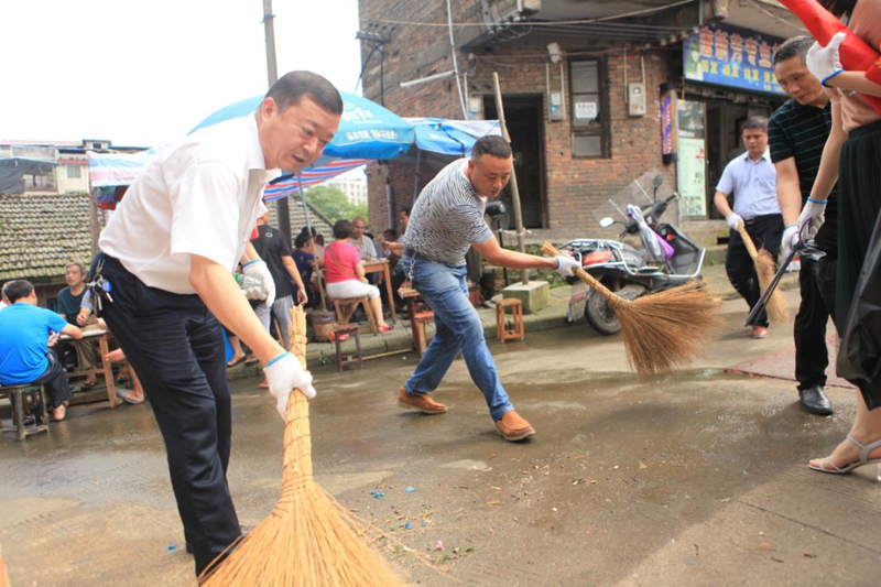 党委书记、董事长李世旺带领党员干部在通化街社区开展“六城同创”卫生大扫除活动
