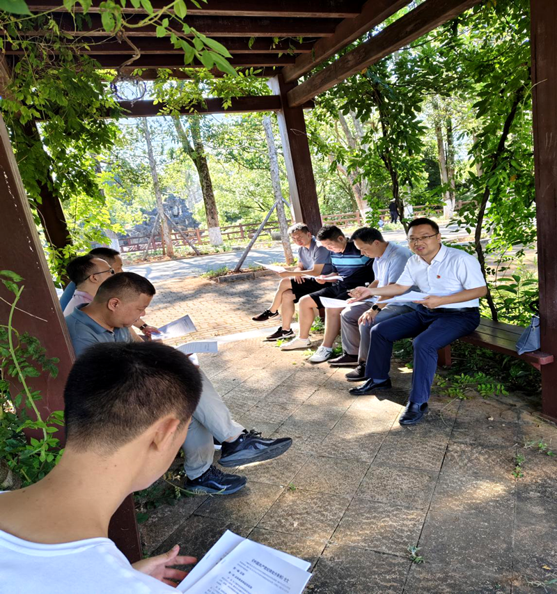 7月22日,清晨的第一缕阳光穿透云层,照耀在办公楼的门前。8点30分,支部全体党员和入党积极分子整装待发,胸前的党徽在晨光中闪耀着坚定的光芒。随着车辆的缓缓启动,我们踏上了前往永州森林植物园清风园的旅程,心中满是对即将展开活动的期待与敬畏。