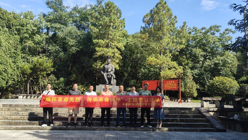 在传承红色基因、缅怀先烈精神的道路上,2024年7月30日上午第三党支部组织了一次庄重而意义深远的主题党日活动。全体党员干部怀着崇敬的心情,前往湖南省祁阳市的浯溪公园,该公园不仅是一座自然景观与人文历史交融的所在地,更是陶铸同志铜像的安放之地。