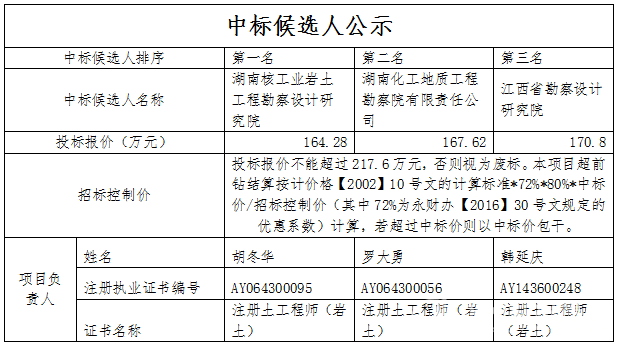永城·福江苑项目基础超前钻工程中标候选人信息公示