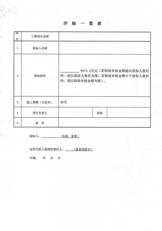 3.6、报价提交:开标后现场提交密封的报价单,报价单为折扣数,加盖公章,当场拆封宣布(报价单下载附件开标一览表)。