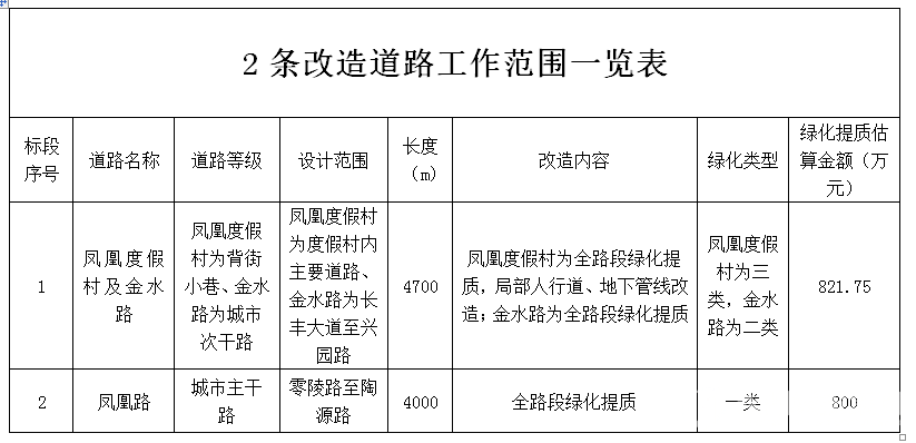 (2)施工内容:园林绿化提质改造、景观、城市家具、文化雕塑、地下管网、人行道板、亮化等;