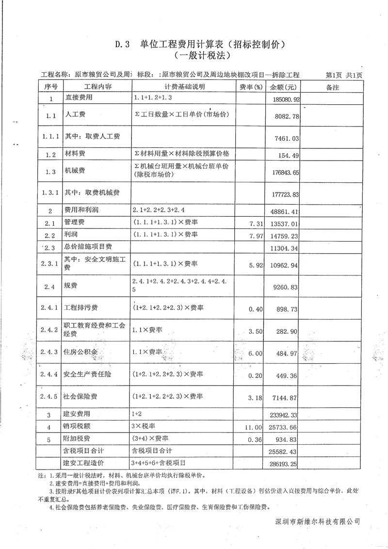 投标报价中的项目单价不能超过发布的单位工程工程量清单与造价表上的综合单位,总报价不能超过286193.25元,否则视为废标。最终结算金额超出投标报价金额以投标报价金额结算,反之以市财政审核为主,请投标人自行考虑项目风险。