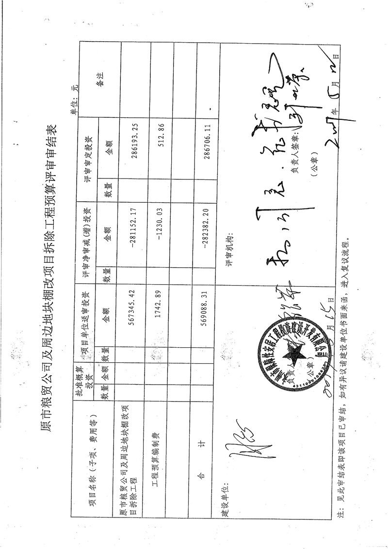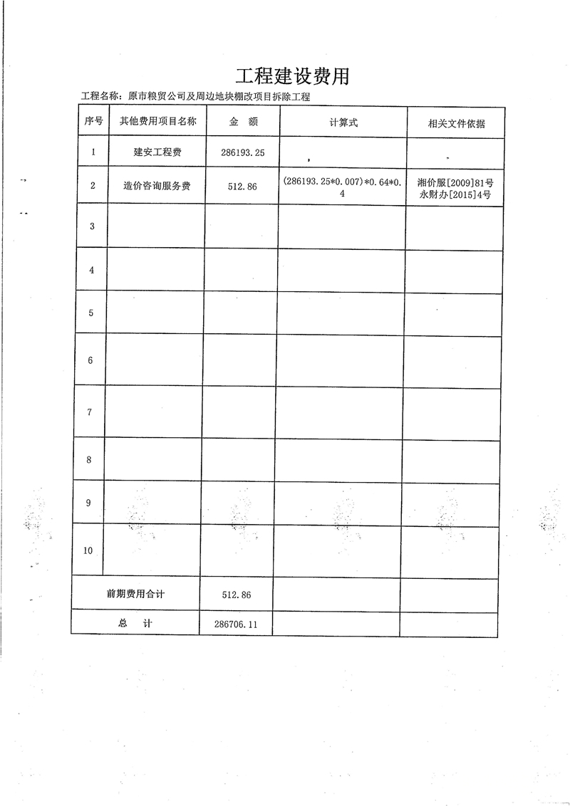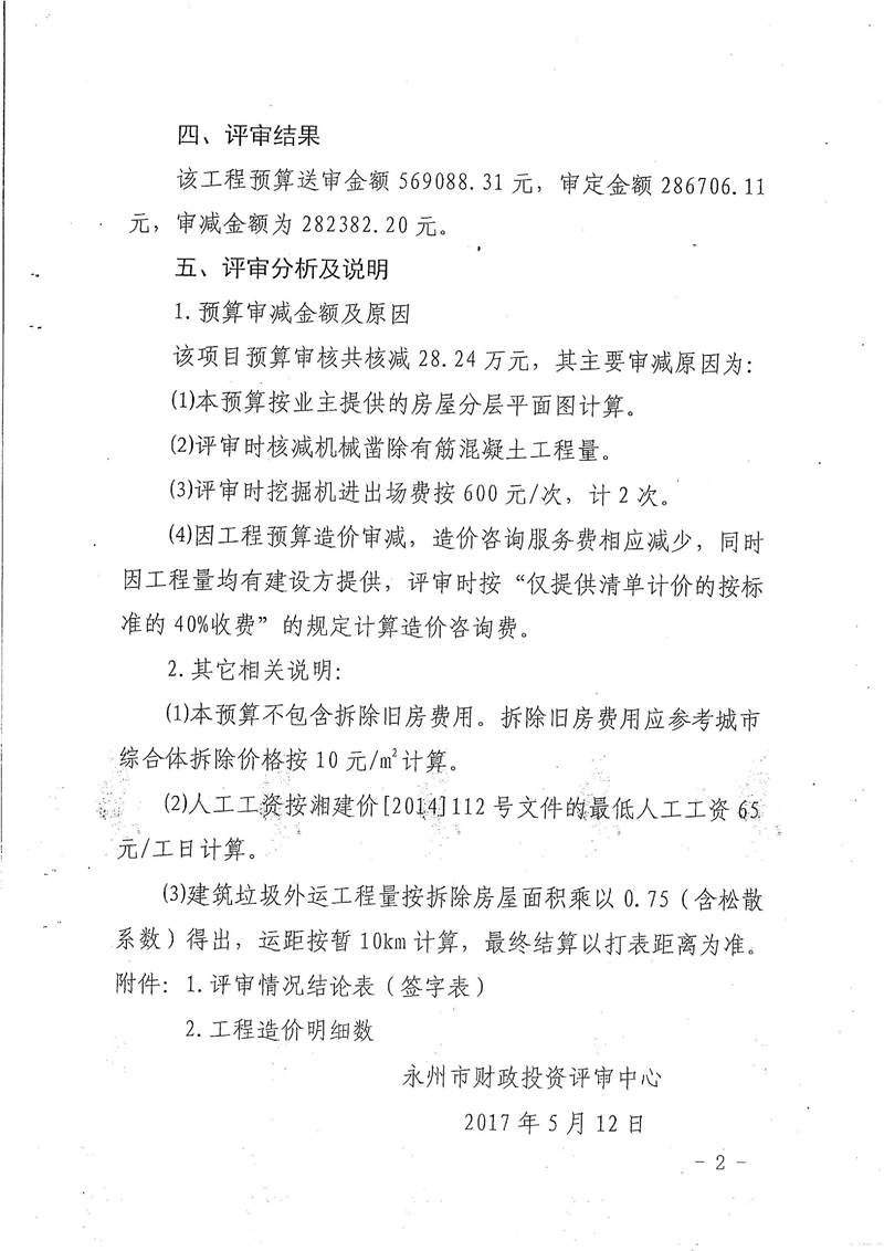 1.6、工程规模:余方弃置4876.48立方米,运距10KM,市财政局审核造价为286193.25元。
