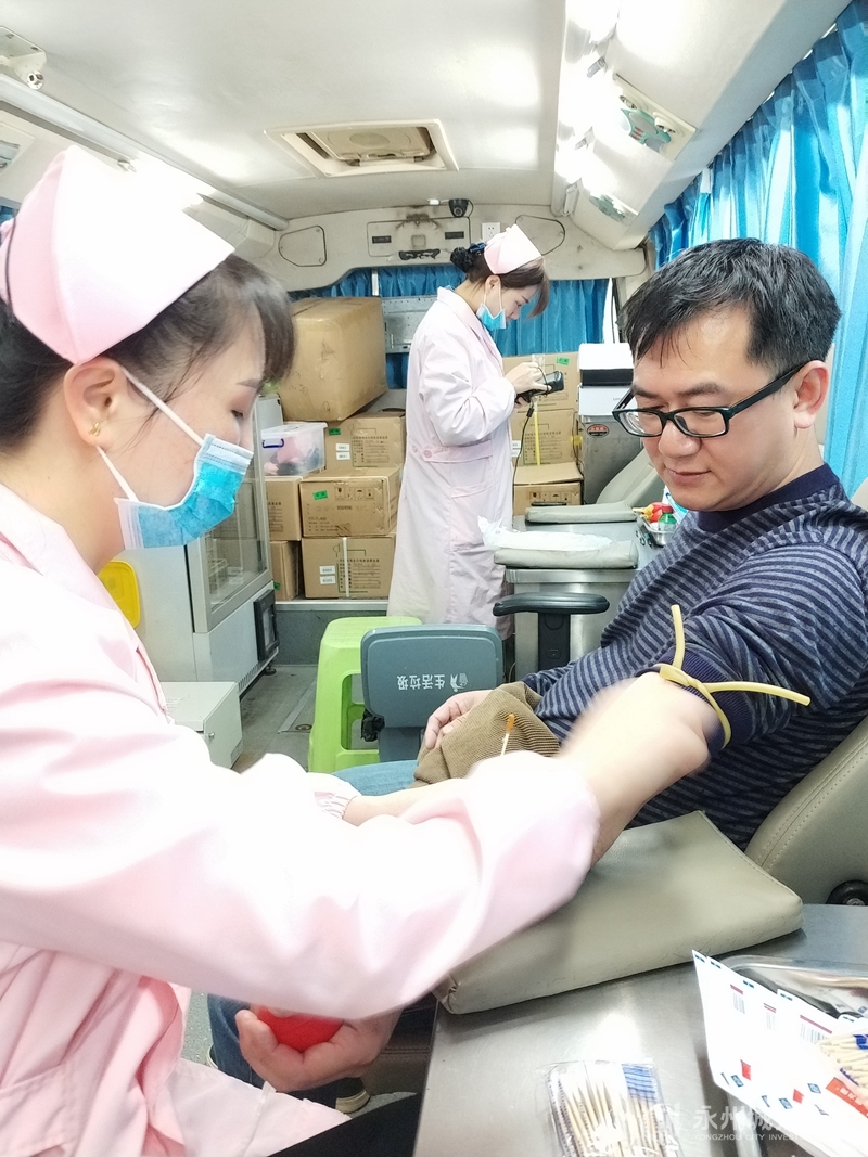 “献血救人功德无量,生命因你而精彩”永州城投集团工会与市中心血站联系,4月12日上午掀起无偿献血公益活动的热潮。