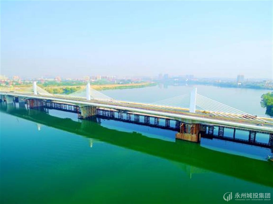 九嶷大桥是我市第一座大型斜拉桥,是横跨湘江连通冷水滩区、永州经开区的交通要道。主线桥长1183米,主桥结构为三塔单索面矮塔斜拉桥,主桥长380米,桥宽34米。大桥于2016年9月正式开工建设,历时三年,2019年9月29日建成通车,有效缓解中心城区东西向过江交通压力,进一步完善中心城区路网和改善市民出行,带动经开区与冷水滩区两岸经济发展。