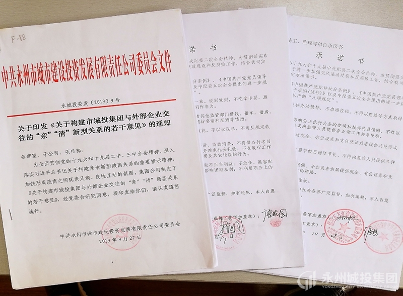 9月27日,永州城投集团制定并下发了《关于构建555000a线路检测中心与外部企业交往的“亲”“清”新型关系的若干意见》,“亲”就是指亲切亲近、坦荡真诚、主动作为;“清”就是指清白纯洁、遵纪守法、严守底线。《意见》详细地界定了干部职工在与外部企业及其负责人交往中,可从事的“八种行为”和不能从事的“八个禁止”, 从制度层面既防止“亲”而不“清”,官商勾结、权钱交易;又防止“清”而不“亲”,为官不为、懒政怠政;既明确了“负面清单”,也开列了“正面清单”,可以更好地引导干部职工守住底线、把好分寸,杜绝发生“闯禁区”的情况,也同时鼓励支持干部职工大胆与企业及企业家接触交往,促进政商关系在依法依规、界限分明、公开透明的轨道上良性互动。