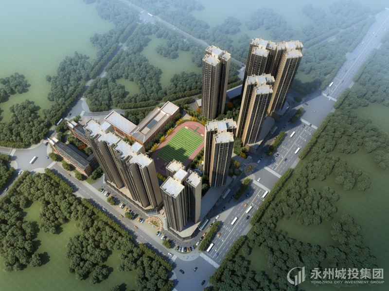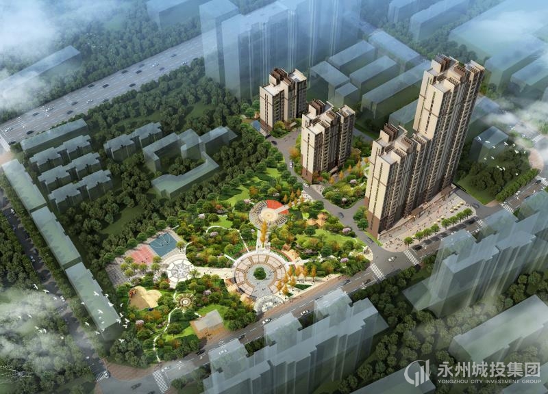 位于永州市冷水滩区河东双洲路与梅湾路交叉口,总占地面积55.52亩,总建筑面积约为19.9万m