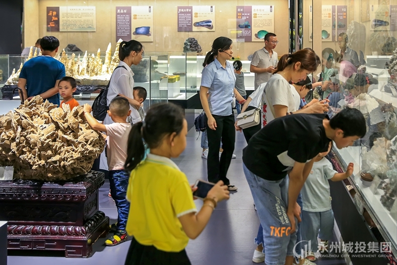 在四〇九队地质科技馆,大家饶有兴趣地参观了“地球奥秘”“勘探之路”“成果宝藏”“未来发展”等展厅。馆内保存着大量永州优势矿种资源标本及各类珍稀矿物,从铁锰到稀土矿,从各色曜石到璀璨的金刚石、水晶,琳琅满目的展品让孩子们眼界大开,感受到了大自然的神奇和伟大,各种展品带来的视觉冲击,让孩子们流连忘返,叹为观止。