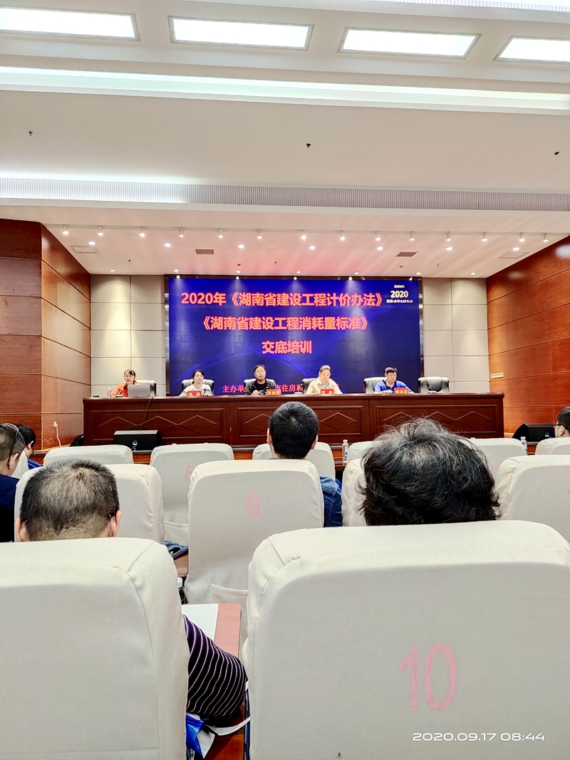 9月17日,我司派出造价业务技术人员积极参加市住建局举办的2020年《湖南省建设工程计价办法》与《湖南省建设工程消耗量标准》宣贯交底培训会议。此次培训,主讲人针对各项工程的业务特点,对即将施行的新文件、新规定进行了详细讲解,包括市政、园林绿化、建筑与装饰、仿古建筑、市政排水设施维护管理、安装等工程的计价办法,工程消耗量材料等相关知识以及广联达端云大数据整体解决方案等。