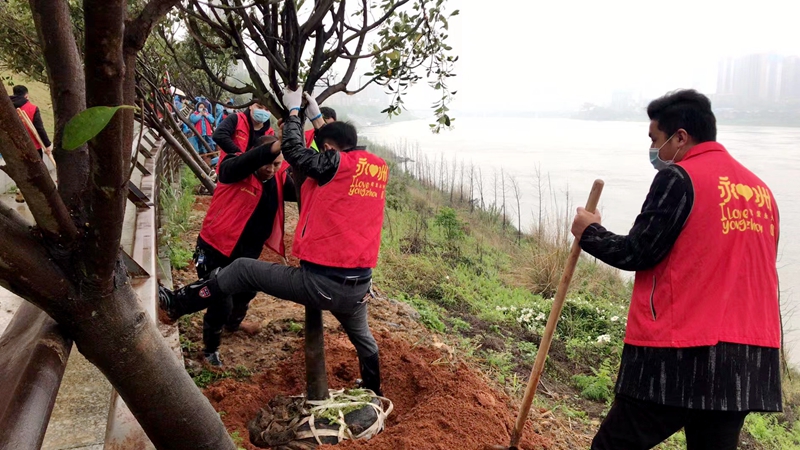 4月1日上午,冷水滩区三多亭社区联合市委办、市委政研室、市城发公司、区委办、区财政局、区环卫和园林中心等市、区联点共建单位,在白石山公园边的湘江河畔共同开展“种植一棵树 引添万丛绿”志愿植树活动。 植树现场,志愿者们分工协作,扶正树苗、拿锄头(铁锹)铲土培蔸、浇水保温、剪叶修枝,共同将树苗种植在规划的空地处。