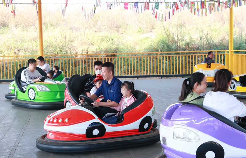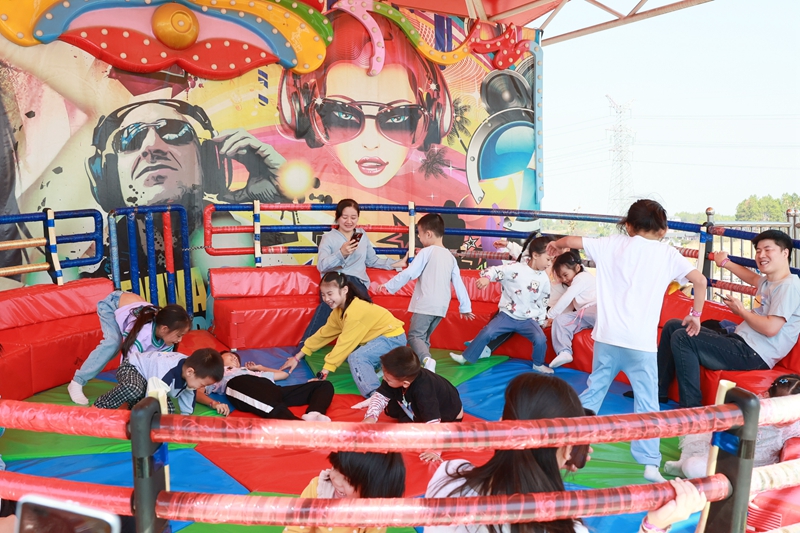 正值秋高气爽,公司干部职工带着小朋友们在景区里尽情玩耍,景区里有多达25个游玩项目,让大家暂时忘却了生活中的琐碎、工作中的忙碌,此起彼伏的欢笑声充满园区。摩天轮缓缓地转动,从高空俯瞰美丽的园区全景,令人心旷神宜;陪伴着孩子们乘坐旋转木马,家长们仿佛也回到欢乐的童年时光;还有那海盗船、丛林飞鼠、碰碰车等大小皆宜、备受青睐的游玩项目,让大家意犹未尽!
