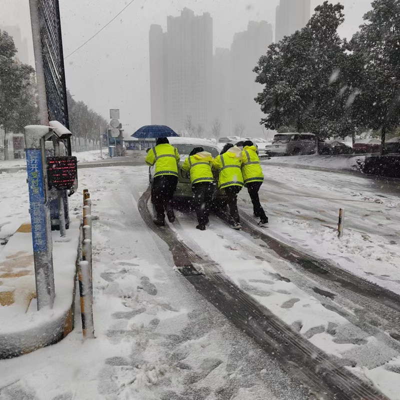 今日初雪纷飞,寒意袭人,然而在停车运营公司的停车场上,一群坚守岗位的巡检员们依然冒着严寒,认真履行着自己的工作职责。