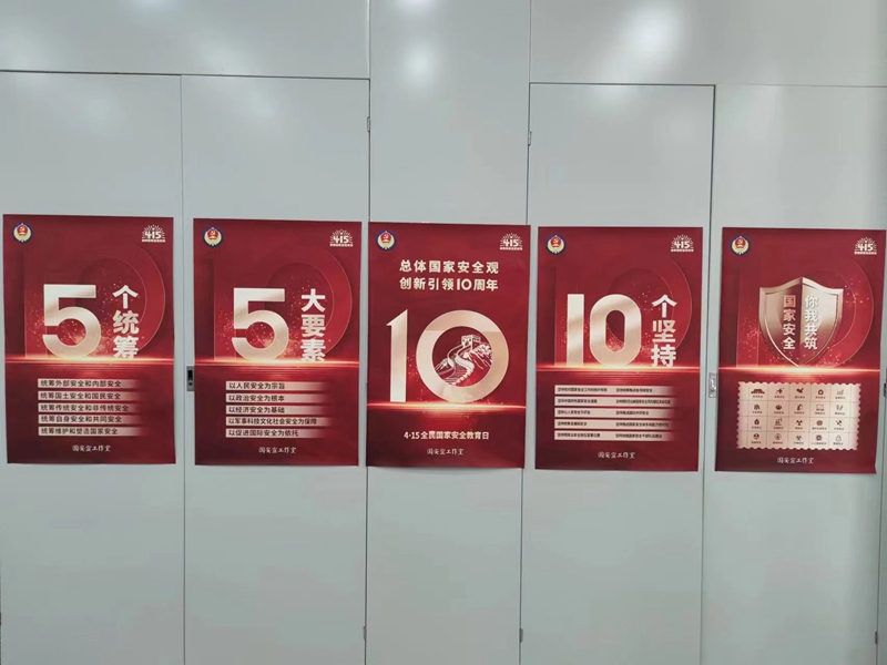 此外,公司还在办公区域广泛粘贴国家安全教育主题海报,生动形象地展现国家安全涵盖的各个领域,如政治安全、经济安全、网络安全、生态安全等,从而有效提升公司职工与到访的社会各界人士对国家安全全方位、多层次的认识。