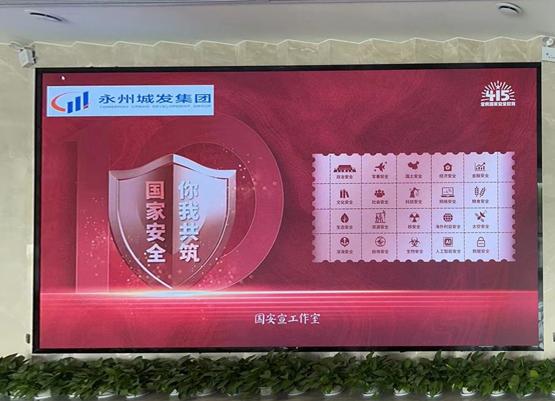 永州城发集团在4月15日全民国家安全教育日期间,积极响应国家号召,开展了一系列宣传教育活动。集团在办公场所显著位置设置了大型电子显示屏,全天候滚动播放有关国家安全的法律法规、典型案例以及公民维护国家安全的权利和义务等内容,强化内部员工及来往人员对国家安全重要性的认知。