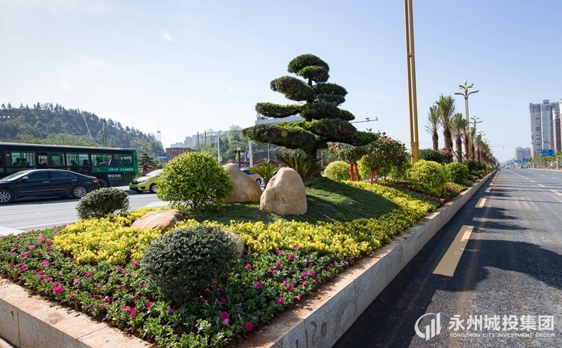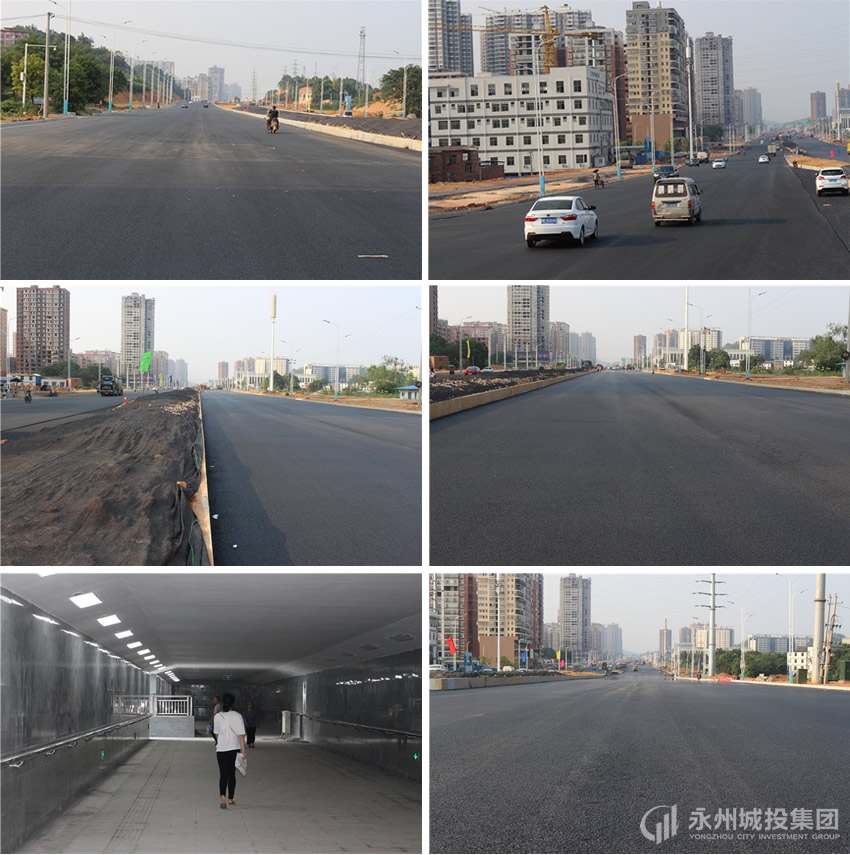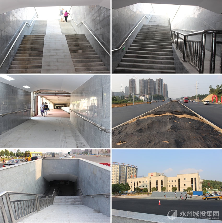 永州大道城区段后续配套工程南起汽车北站(润之路),北至永州大桥南桥头,全长约4.9公里,原道路总宽为60m,现设计向两侧各扩宽10m,总宽度达80m,具体断面为:10m(自行车道和绿化带)+5m人行道+2.5m绿化带+18.5m(四个机动车道和一个BRT专用车道)+8m/2(中央绿化带),两侧对称布置。该工程包含道路及人行道、排水、地下通道、综合支线管廊及绿化景观等分项工程。